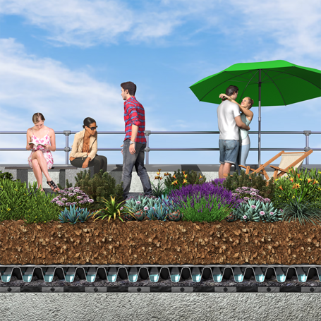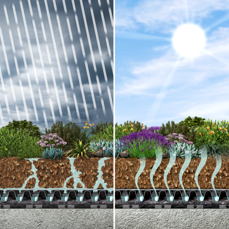 Anwendungsbereiche: Die Produkte sind vielseitig einsetzbar und eignen sich sowohl für extensive Begrünungen als auch für intensive Begrünungen. Extensive Dachbegrünungen sind pflegeleicht, leichtgewichtig und benötigen nur minimale Eingriffe. Sie eignen sich ideal für Flachdächer oder Dächer mit geringer Tragfähigkeit. Intensive Dachbegrünungen hingegen schaffen gartenähnliche Oasen und bieten Platz für größere Pflanzen, Rasenflächen oder sogar Sitzbereiche – perfekt für all jene, die ihre Dachfläche aktiv nutzen möchten.
