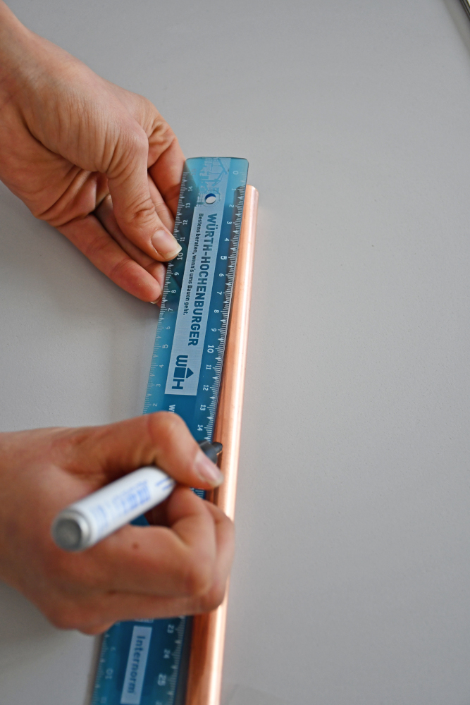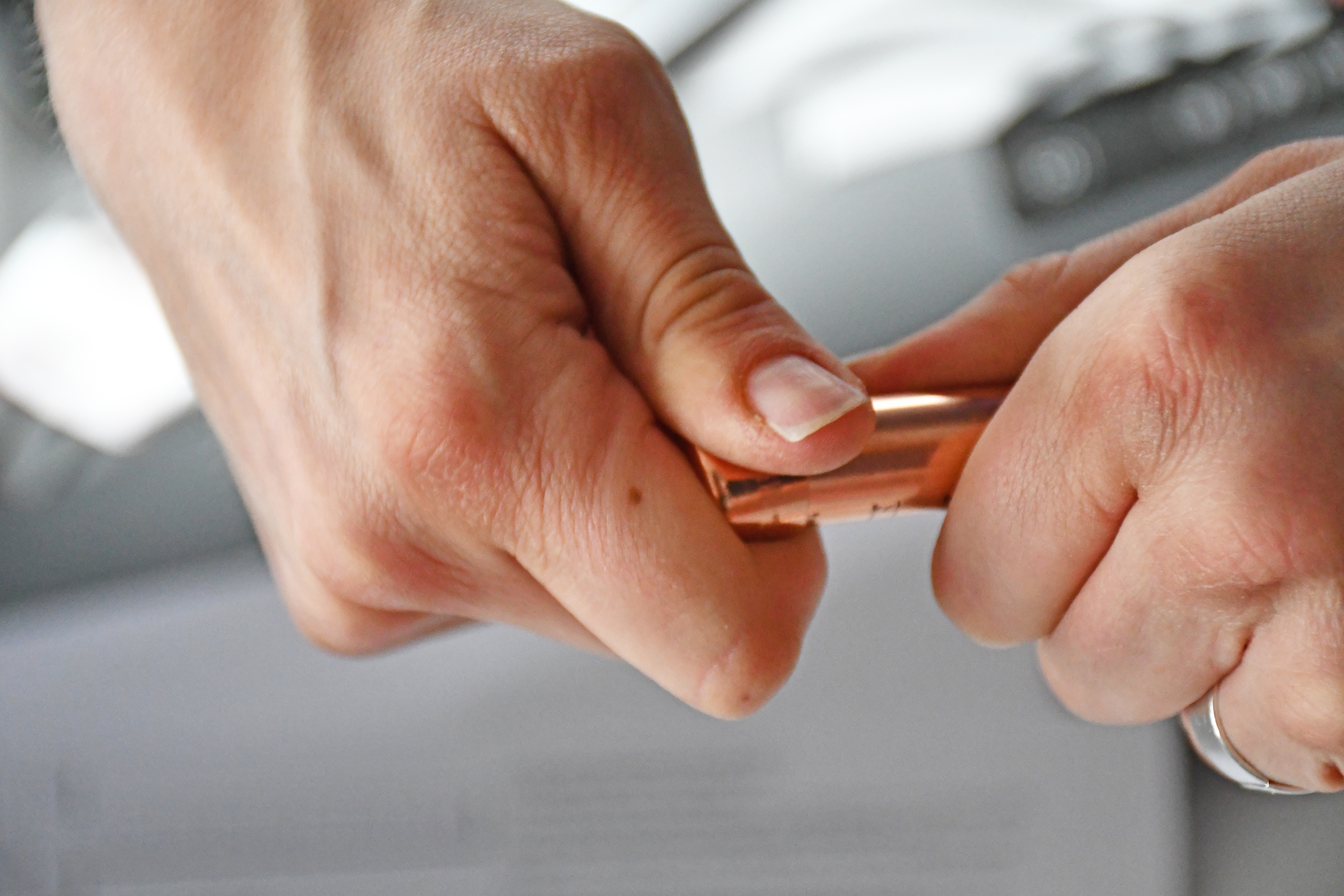 Durch das Anfassen und den Kontakt mit der Haut können Verfärbungen am Kupferrohr entstehen. Mit etwas Putzen & Polieren bekommt man die Verfärbungen aber wieder weg. Will man sich das sparen, kann man beim Bau auch Handschuhe tragen.