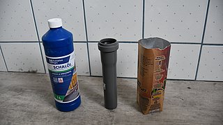 In unserem Fall haben wir uns für einen leeren, halbierten Tetrapack-Karton entschieden. Die Innenseite der Form wird mit Schalungsöl eingeschmiert, damit sich der trockene Beton später leichter lösen lässt.