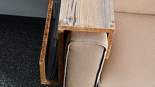 Nachdem man die Bretter mit insgesamt acht Schrauben zusammengeschraubt hat, kann man diese noch mit Abdeckklappen versehen um das Ganze abzurunden.