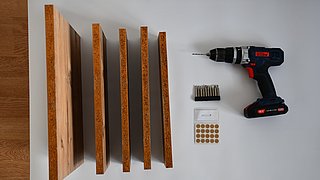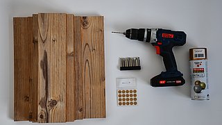 Ein sicherer Umgang mit einer Bohrmaschine ist bei diesem DIY-Projekt eine Voraussetzung. Falls das nicht der Fall sein sollte, kann man die Bretter mit Schraubenzwingen fixieren, um die Gefahr einer Verletzung zu vermeiden.