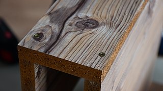 Im nächsten Schritt werden die zusammengehörenden Bretter bündig verschraubt. Hier sollte man eine helfende Hand zur Stelle haben, damit die Teile nicht während des Schraubens verrutschen.