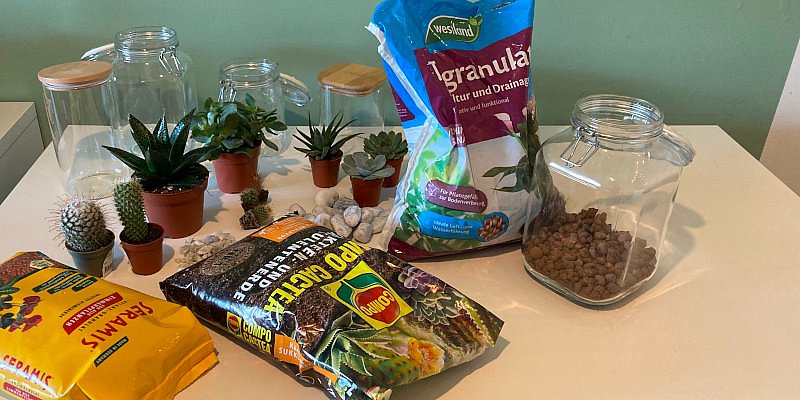 Um Ihren eigenen Flaschengarten selbst zu machen, benötigen Sie nur wenige Materialien: