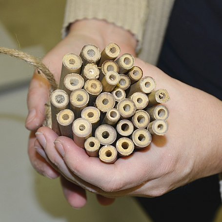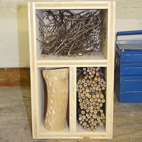 Jegliche Materialien für den Bau Ihres Insektenhotels sollten frei von Schadstoffen, Lack und Lösungsmitteln sein – am besten verwenden Sie unbehandelte Materialien. Bohrlöcher sollten immer ins Längsholz gesetzt und sauber abgeschliffen werden, damit sich Insekten und Bienen beim Hineinkrabbeln mit ihren zarten Flügelchen nicht daran verletzen.