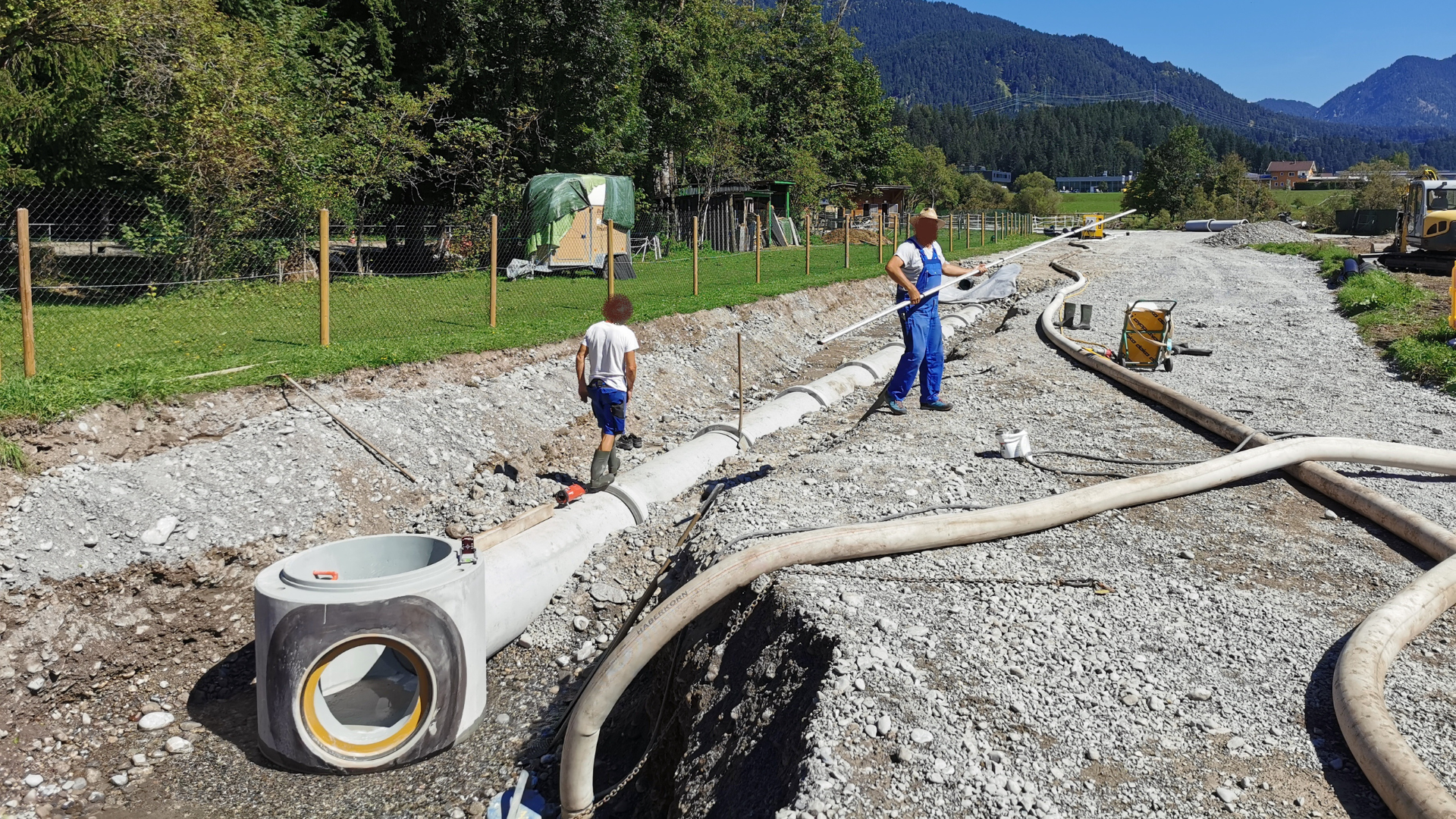 WH wurde vom Baubezirksamt Reutte beauftragt für dieses Projekt die benötigten Baustoffe für den Tiefbau bereitzustellen. Für den HWS Reutte Lüß lieferte WH die Stahlbetonrohren in den Größen DN 600, DN 800 und DN 1000 mit einer Gesamtlänge von rund 3.000 Metern. Diese Rohre sind essenziell für die Ableitung von Hochwasser und tragen maßgeblich zur Stabilität und Sicherheit der gesamten Infrastruktur bei. Zusätzlich wurden 60 Kontrollschächte aus Beton in den Durchmessern DN 1000, DN 1200 und DN 1500 bereitgestellt, die für die ordnungsgemäße Überwachung und Wartung des Entwässerungssystems notwendig sind.