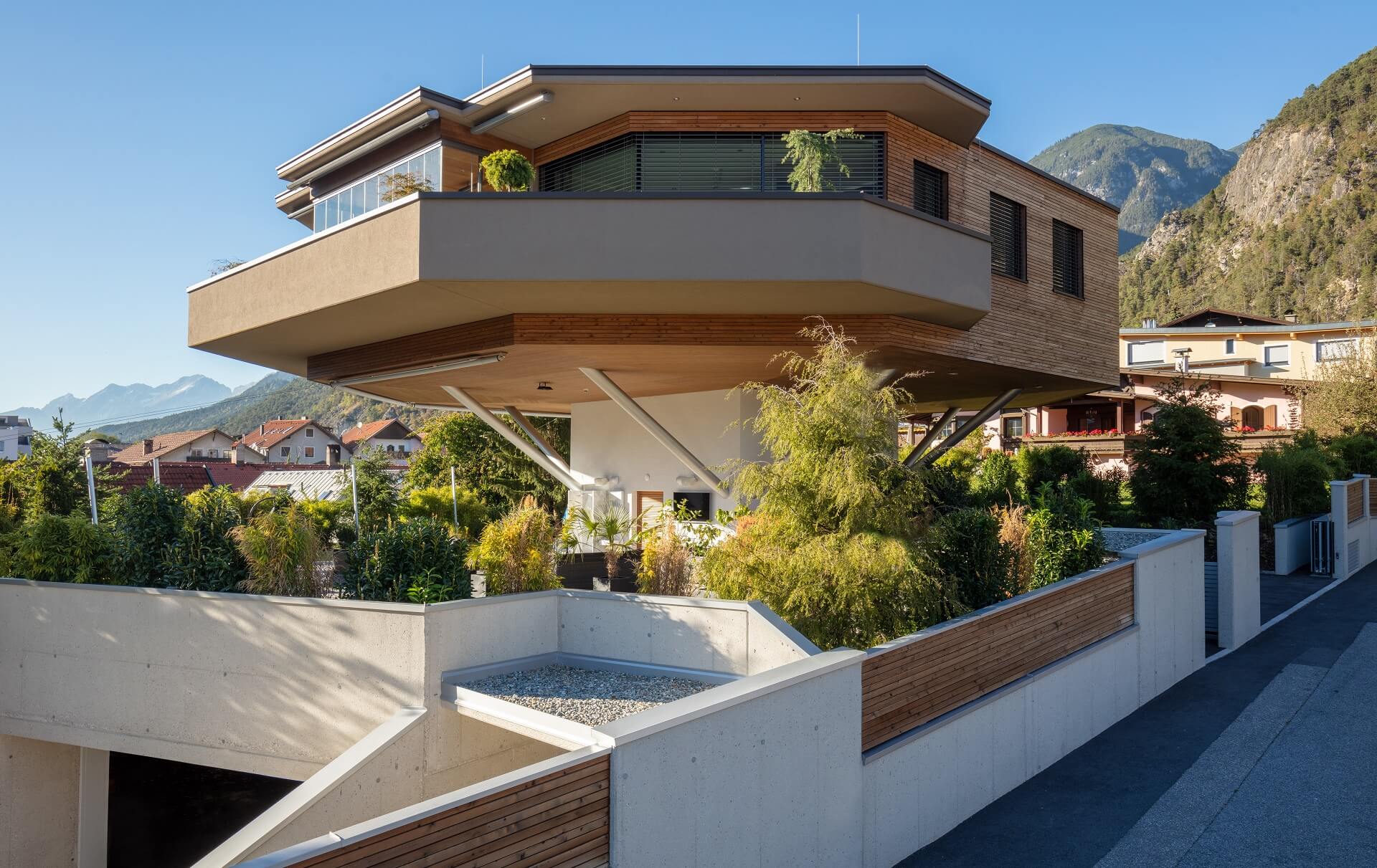 Das topmoderne Einfamilienhaus in zentraler Lage in Zirl in Tirol besticht durch seine außergewöhnliche Architektonik. Dabei ist die Idee, die aus der Feder von Hausherr und Baumeister Ing. Hutter stammt, so einfach wie genial.