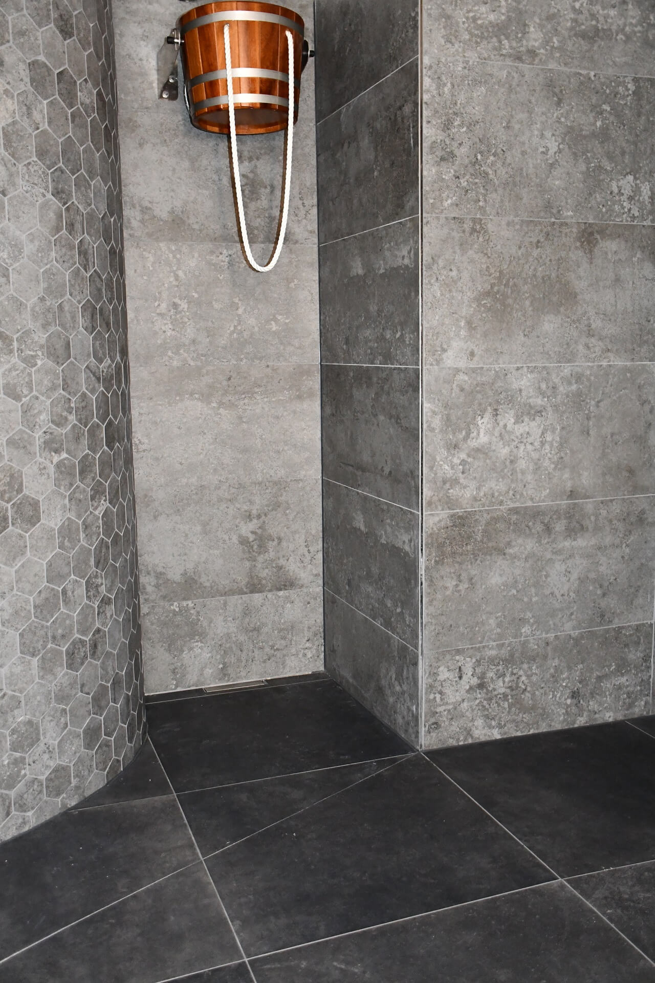 Fliesen-Experte und WH-Außendienstmitarbeiter Benjamin Schöpf und Innendienstmitarbeiter Christian Zint haben für diesen Neubau die perfekten Fliesen geliefert. Mit den Fliesenprodukten des Lieferanten Unikom Starker konnte der Bauherr seine konkreten Vorstellungen umsetzen. Drei unterschiedliche Formate und Formen wurden in dem Wellnessbereich, Saunen, Umkleiden, Stiegenhaus Podesten und Hausgang verlegt. Alle gelieferten Fliesen mussten die Rutschklasse erfüllen.